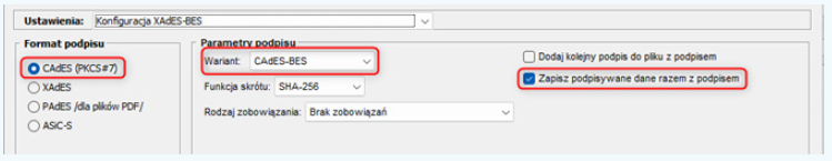 csr_edoreczenia.pem) do podpisu - W ustawieniach podpisu ustaw: