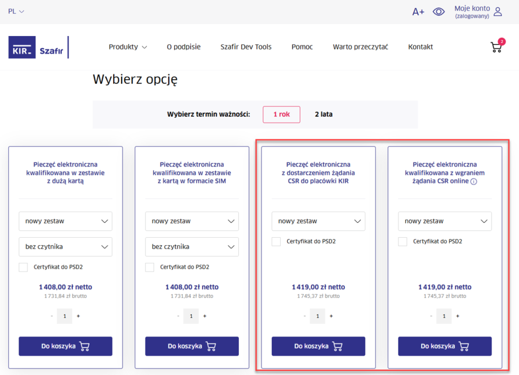 - Wejdź na stronę KIR: https://www.elektronicznypodpis.pl/produkty/pieczec-elektroniczna-szafir,191